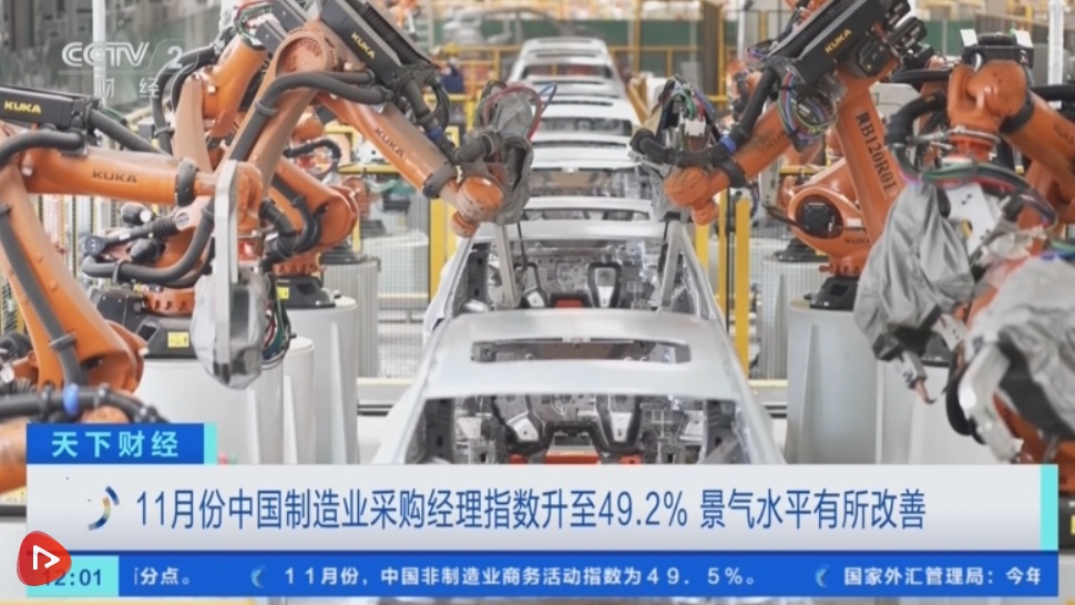 央视新闻:国家统计局、中国物流与采购联合会11月30日联合发布的数据显示,11月份,中国制造业经理人指数(PMI)为49.2%,比上月上升0.2个百分点;制造业景气水平有所提升。
