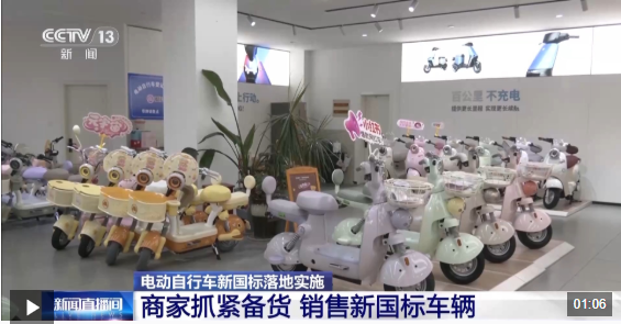 在连日来,浙江省湖州市的商家也备货了符合新国标的电动自行车。对于新国标的实施,不少消费者表示,对出行影响不大。